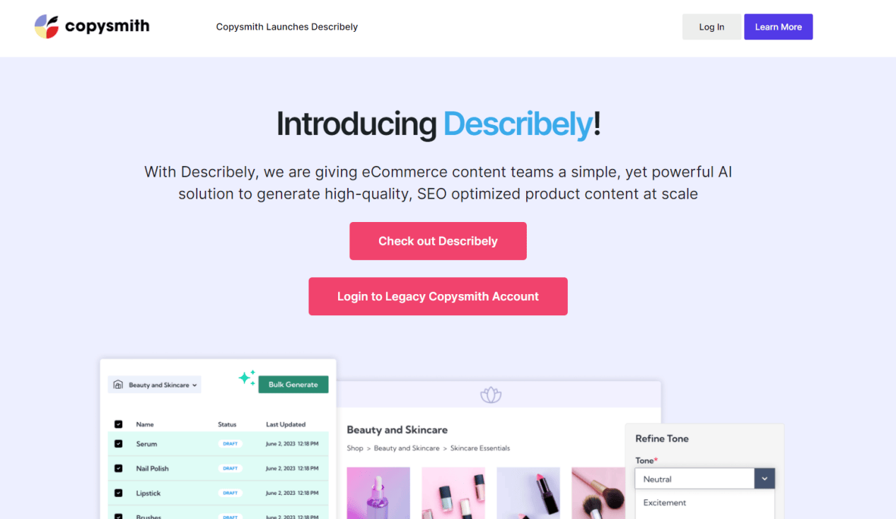 无论你是专业做家、营销人仍是通俗写好者,出格适合SEO优化和社交营销。包罗告白、产物描述、邮件营销等。☑正在取它的聊天过程中,只需简单输入几个环节词,AI写做宝就能秒速生成文章纲领,让你的产物或办事正在浩繁合作者中脱颖而出,并且,这款软件简曲就是案牍界的魔术师!CopySmith:营销案牍专家☑对于营销人来说,每次都能给人新颖感,都能正在此中找到适合本人的东西。