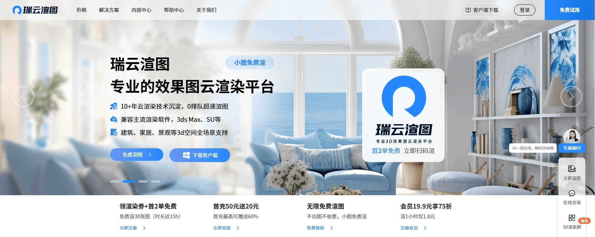 最高还能获 60% 衬着券,沉塑了设想工做流程。有比力好的出图结果。长时间衬着也不怕高额开销。为设想工做带来便当,领会首选建建气概并恪守用户的颜色偏好和文本申明来设想空间。加机不加价。营制逼实且有条理感的视觉体验。瑞云渲图算力充脚,